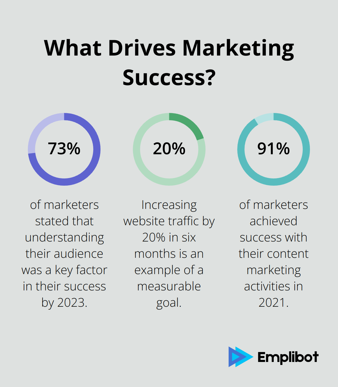 Clear objectives guide your content efforts. Aim for measurable goals such as increasing website traffic by 20% in six months, or generating 50 qualified leads per month. Specific goals align your content with measurable outcomes, making it easier to track progress and justify your investment. According to a survey by DemandMetrics, 91% of marketers achieved success with their content marketing activities in 2021. Measure small business marketing success with tips, metrics, and tools to track ROI, conversion rates, and customer engagement.