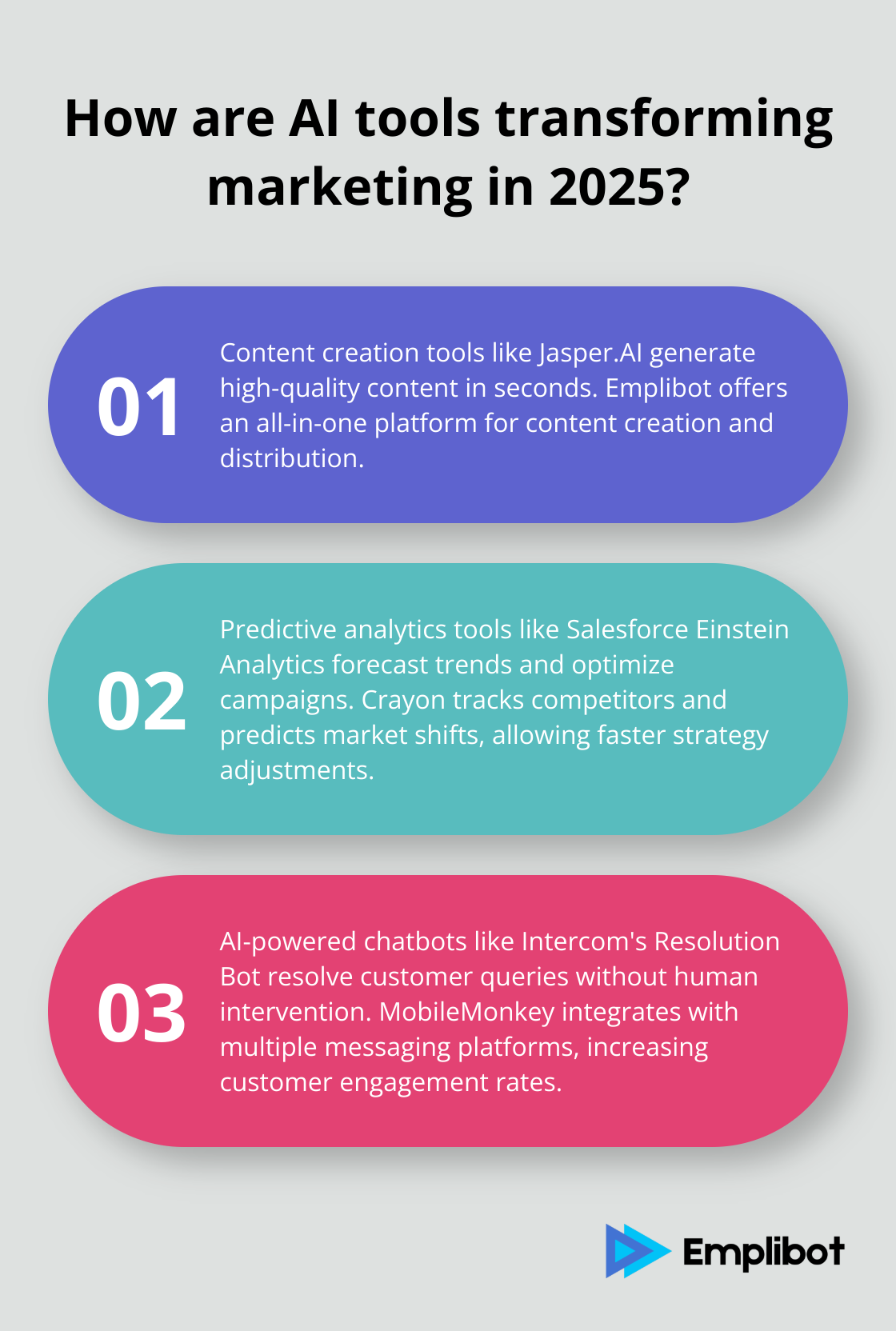 As we move forward, it’s clear that AI will continue to shape the future of marketing. In the next section, we’ll explore some of the top AI-powered marketing tools you should consider for your business (including Emplibot, which stands out as a top choice for content creation and distribution).